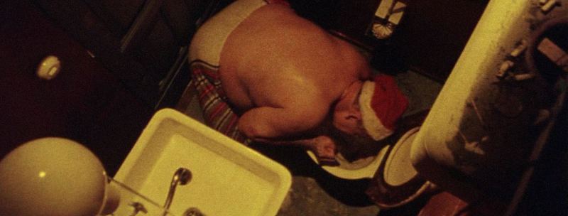 Kuvainraastoon erikoistunut Halonen irvii suomalaisille jouluperinteille omaan räävittömään tyyliinsä. Suomalaismiehet paistavat itseään 140 asteen joulusaunassa samalla, kun porsas herkuttelee joulupöydässä. Syömään saapuvia odottaa sianpaskainen pöytä, joten eihän sitten kurkusta alas kelpaa enää muu kuin viina. Arasteleva pukki (Oiva Lohtander) teljetään komeroon aina kun hän alkaa soittaa suutaan liian paljon. Jouluevankeliumikin luetaan, tosin hiukan tulkiten vessanpöntölle.